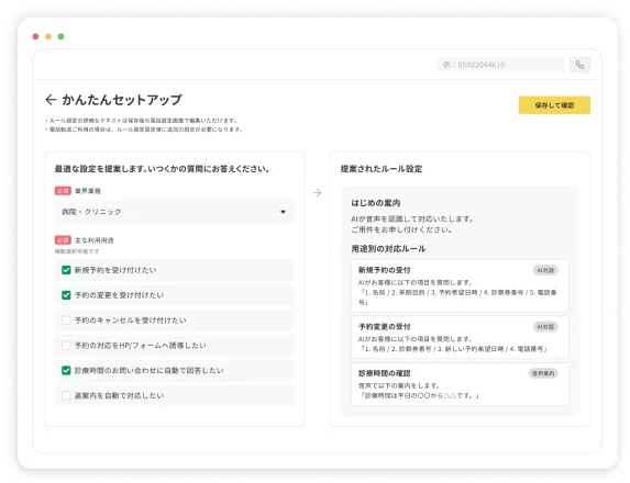- 高性能AIによる電話対応