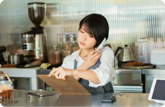 店舗でのご利用- 電話対応はアイブリーにまかせて、シフトを削減できたり、時間を接客などもっと人がやるべき業務に集中できます。