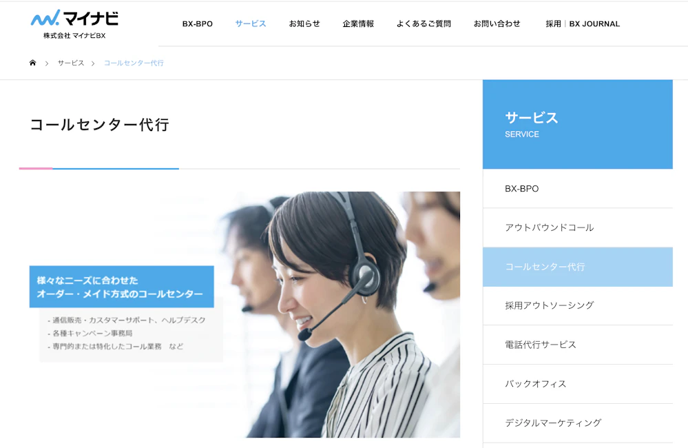 マイナビBX | 要問い合わせ | 要問い合わせ | 設立20年以上の実績・自社雇用オペレーター・小規模から大規模まで対応 |