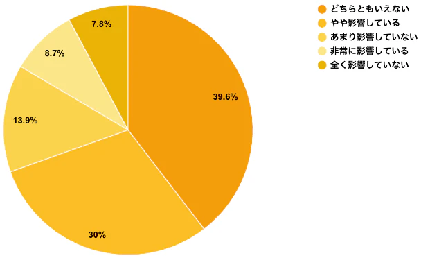 編集部が全国の企業で働く20歳〜65歳の男女200人を対象に実施したアンケートでは「電話対応の課題が顧客満足度に影響していると感じるか?」との設問に、30%の方が「やや影響している」と回答。また、「非常に影響している」と感じる方も8.7%いました。