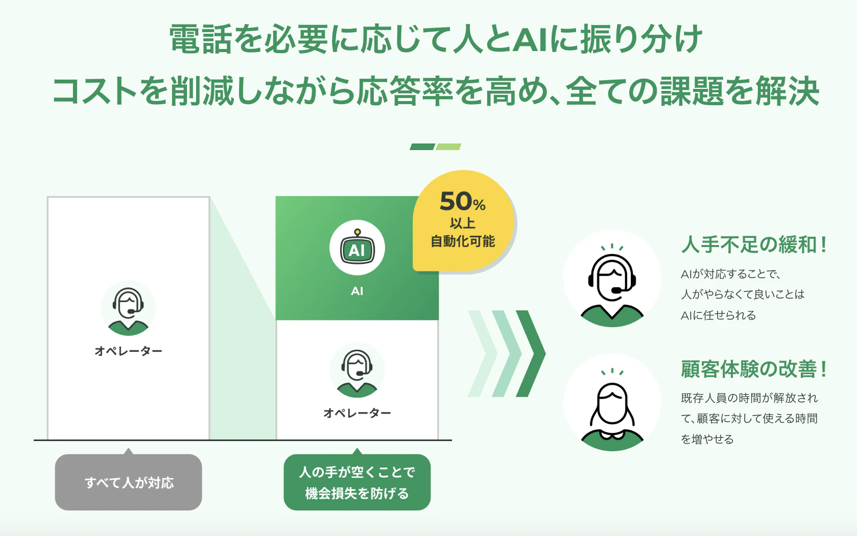 AIの導入によって電話対応に費やす時間を4割から、多いところでは7割以上、自動化できたケースもあるため、AIがもたらす効率化のインパクトは非常に大きいと考えています。