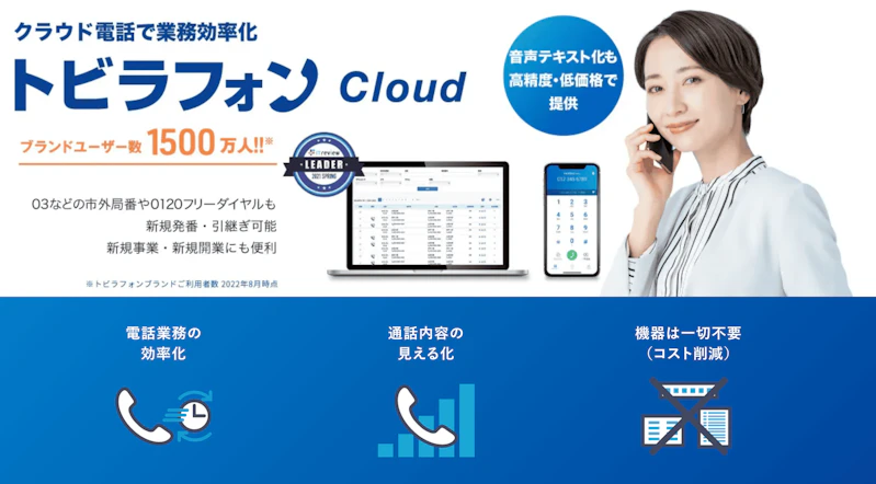 トビラフォンCloudは、設備投資が不要なクラウドPBXです。スマホで使えるので電話機が必要ありません。NTTコミュニケーションズのIP電話回線を利用しており、通話品質も安心です。顧客管理機能が充実しています。