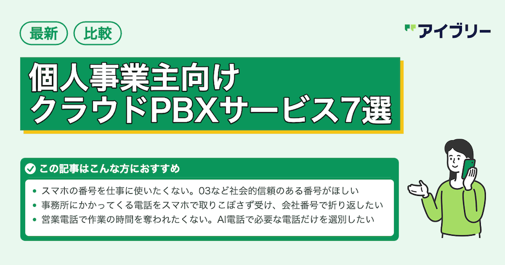 この記事では、クラウドPBXの基本情報や導入するメリットと選び方、個人事業主向けのクラウドPBX サービスがわかります。