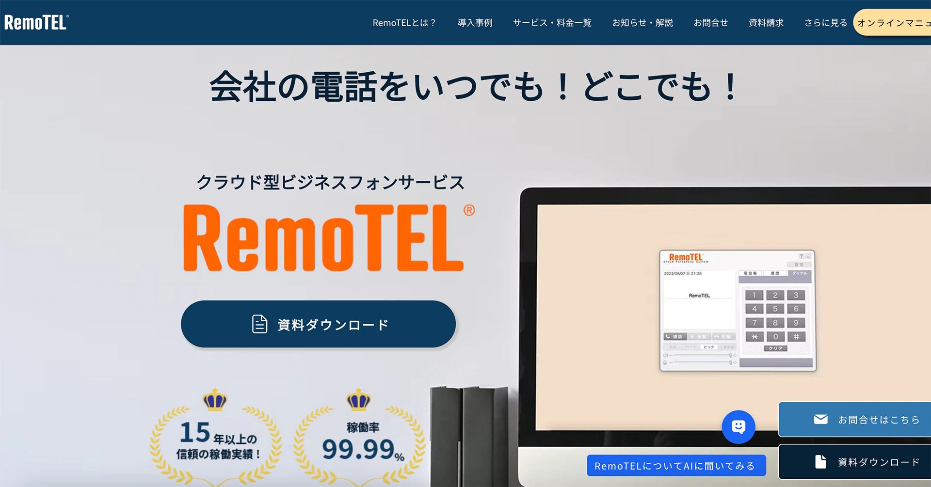RemoTEL(https://www.remo-tel.jp/)は、株式会社ジェイドコーポレーションが提供しているIP電話サービスです。契約プランが豊富に用意されているため、自社に適した契約プランが見つかります。基本契約や利用者数オプション機能などは1か月単位で契約が可能です。