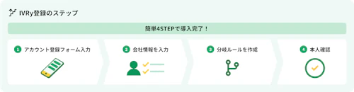 「IVRy」の導入は申し込み手続き完了後、ブラウザやアプリから電話対応のルール(分岐)を設定するだけ。最短即日に利用開始できるため、迅速な導入を必要とするケースにも対応できます。