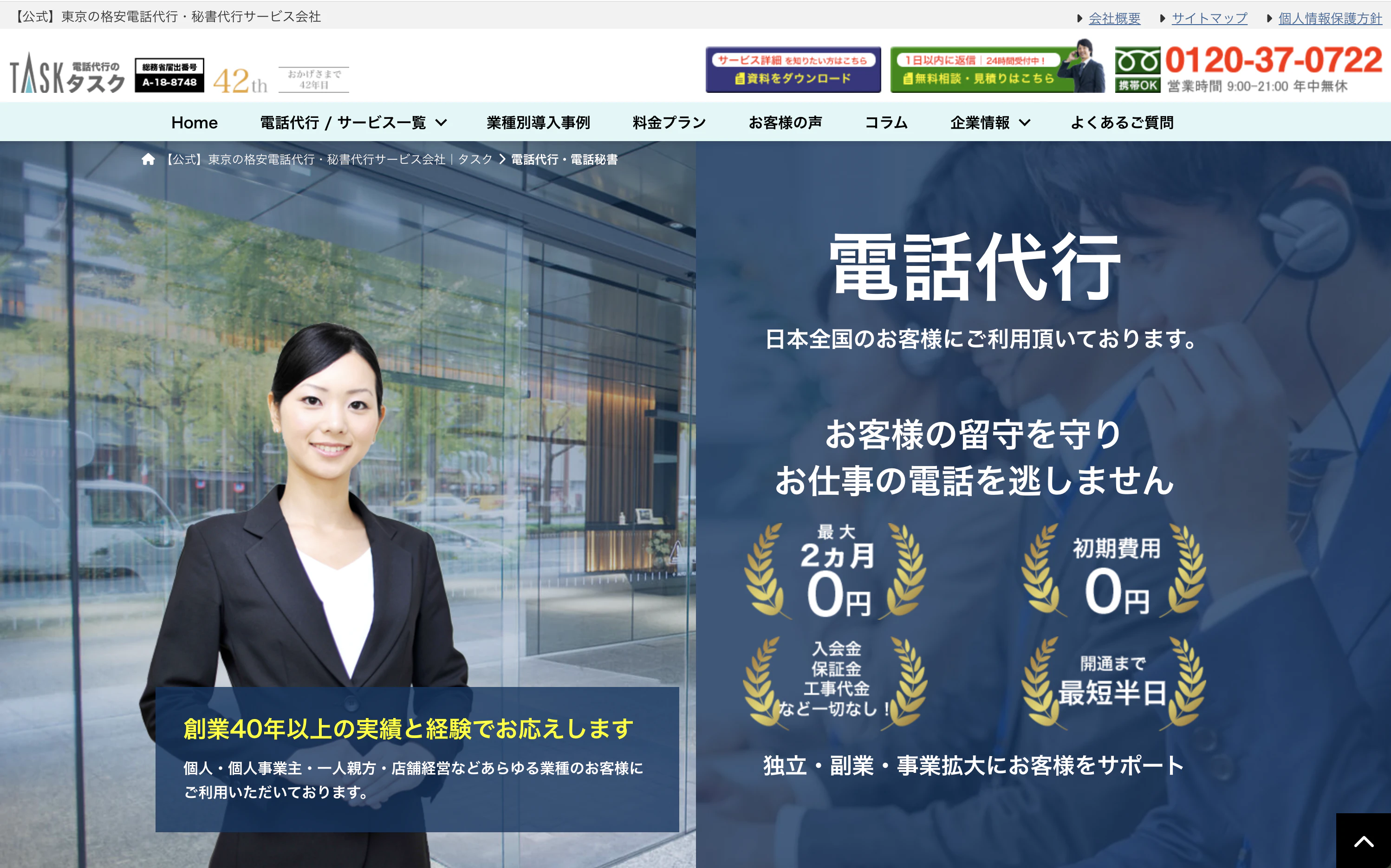 電話代行のタスクは、株式会社タスクが提供する電話代行・秘書代行サービスです。