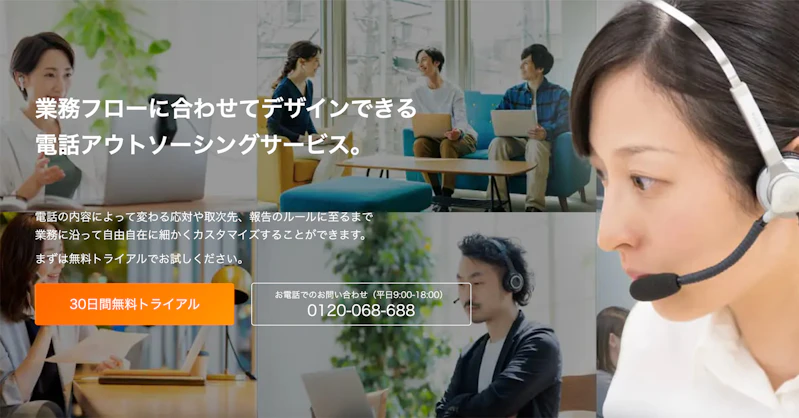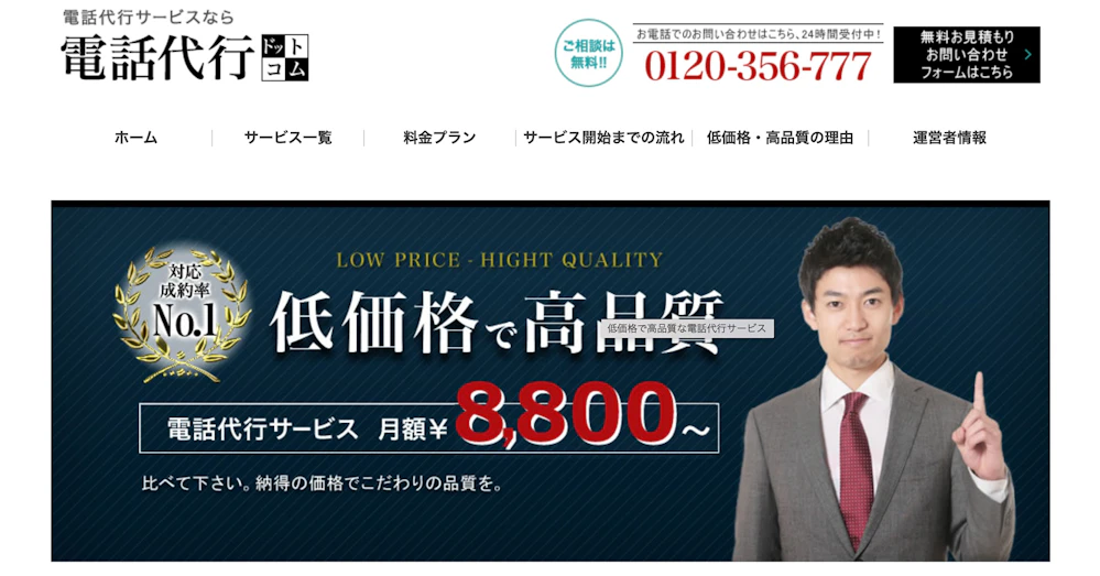 月額3,000円からの格安プランを含む5つの料金プランを提供し、長期研修を受けた専門スタッフによる高品質な電話対応を実現しています。