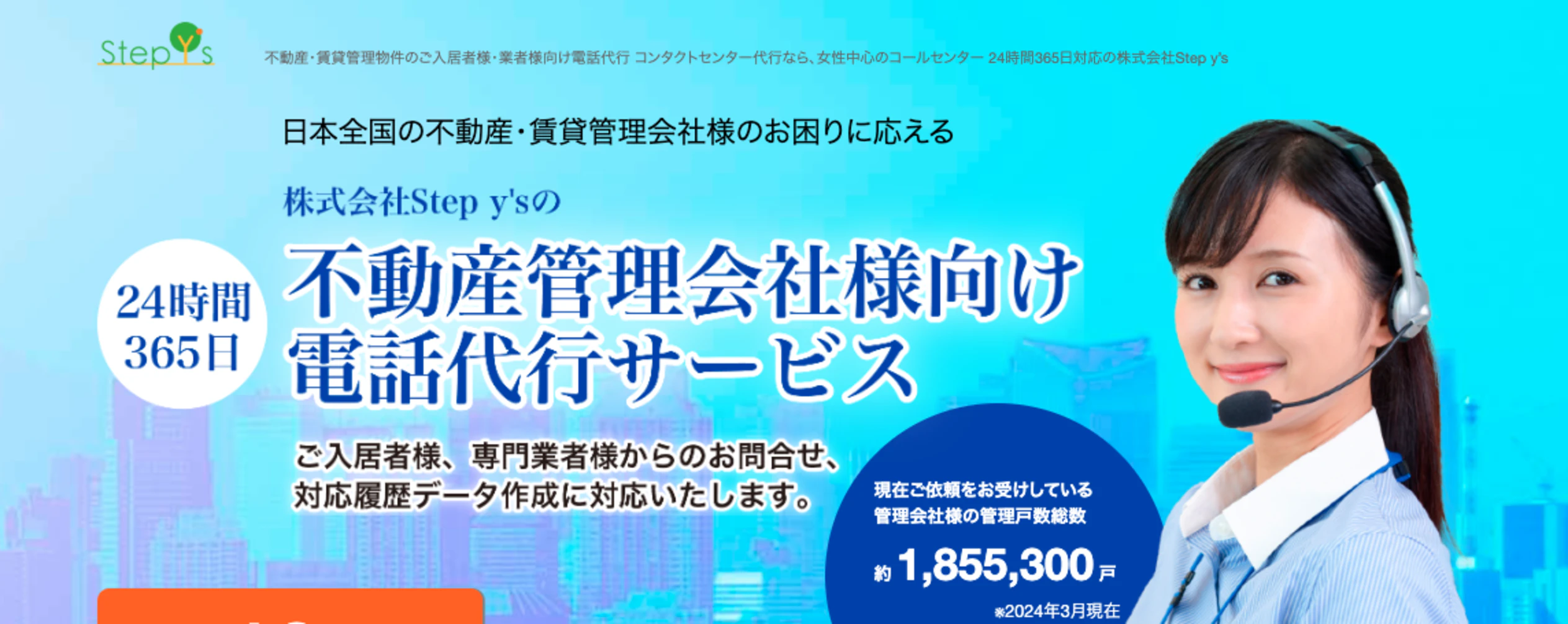 「Step y's」は、不動産・賃貸管理会社向けに特化した電話代行サービスです。入居者や専門業者からの問い合わせ、クレーム対応に加え、対応履歴データの作成まで幅広くサポート。
