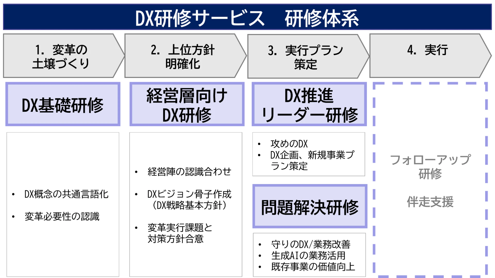 4.DX時代の問題解決研修: ITスキル系の生成AI研修だけでは身につかない、「ビジネス課題解決のための生成AI活用ノウハウ」を実践を通じて学ぶワークショップ型研修