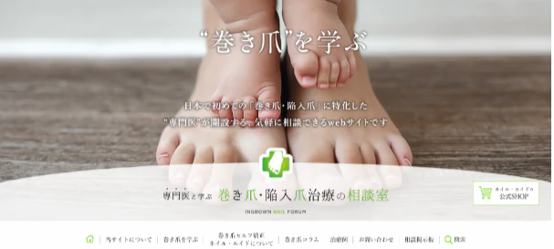 正確で信頼性の高い情報を発信し、巻き爪に悩む方々のセルフケアから医療機関の受診までをサポートするサイトです。