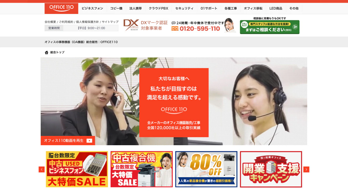 株式会社ベルテクノスが運営する「OFFICE110」は、ビジネスフォン、複合機、法人携帯、クラウドPBXなど、オフィスに必要な設備をワンストップで提供するOA機器総合サイトです。全国対応・全メーカー取扱いにより、業種や規模に応じた最適な構成を提案し、導入前の相談から設置工事、保守サポートまで一気通貫でサポートします。また、中古機の活用によるコスト削減や、クラウドPBX「OFFICE PHONE」によるテレワーク環境の整備を通じて、全国の中小企業・個人事業主のオフィスDXを後押ししています。