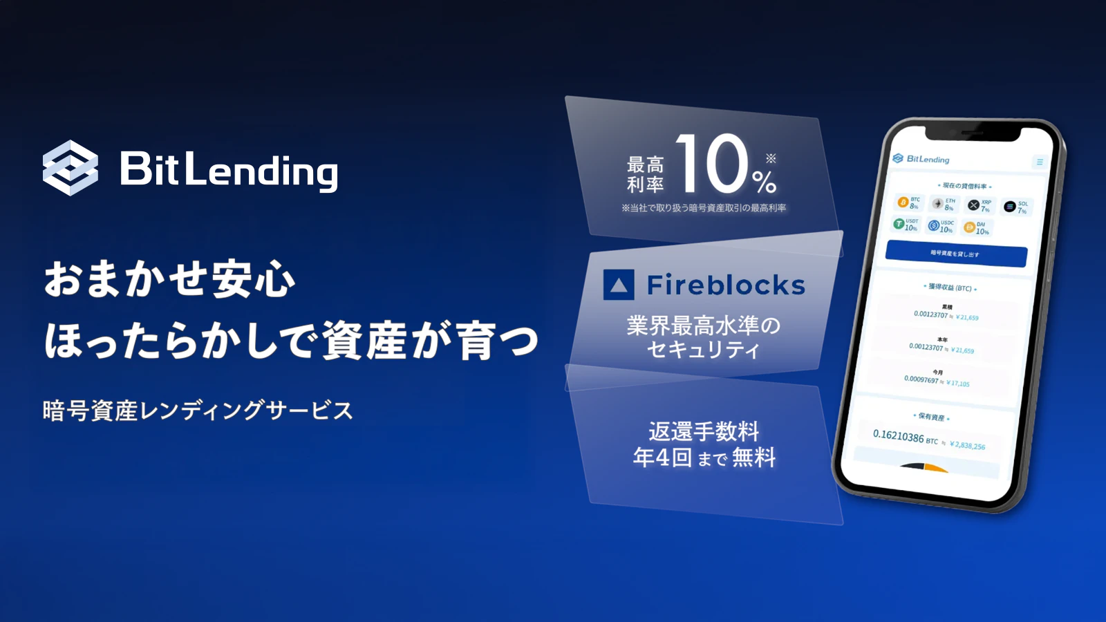 BitLendingは暗号資産を貸出したお客様が既定の料率の貸借料を得ることができる暗号資産レンディングサービスです。
