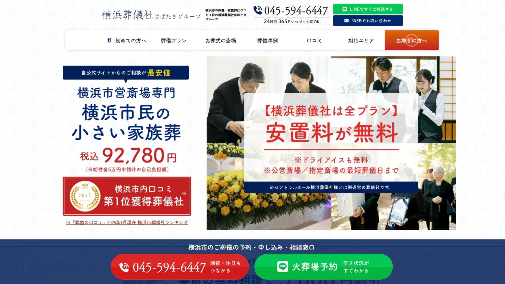 横浜葬儀社は、「口コミ1位」の実績を掲げ、地域に密着した信頼性の高いサービスを提供しています。緊急時の相談にも24時間対応しています。