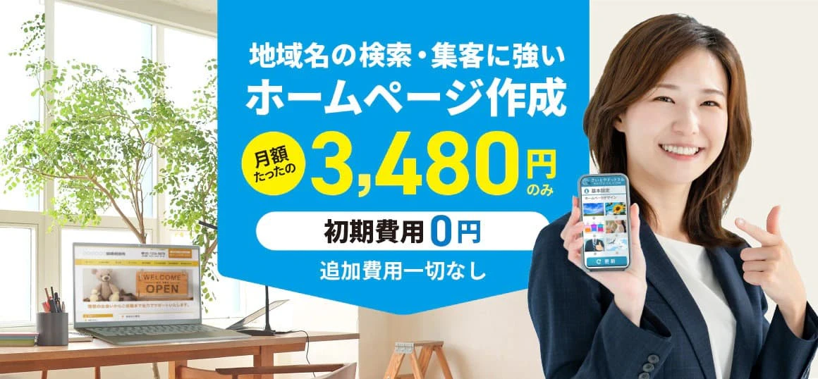 これまで様々な業種のホームページを100社以上作成し、実際にお問い合わせがくるように集客に繋げた当社がそのノウハウを最大限に駆使した地域の集客に強いホームページ作成サービスを格安料金でぜひお試し下さい。