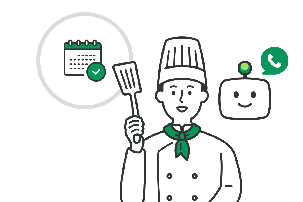 飲食店の予約台帳システムとアイブリーを連携させれば、AIが24時間365日、空席確認から予約登録まで電話対応を自動化。ピークタイムの忙しさから解放され、予約の取りこぼしゼロを実現します。