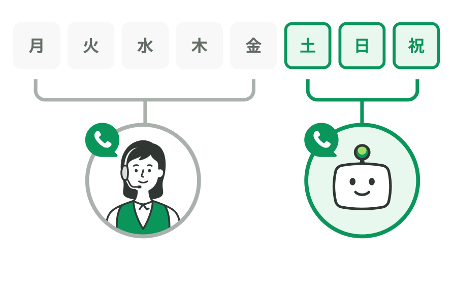 営業時間内は担当者へ転送、営業時間外や休日は留守番電話や自動読み上げなど、日時・曜日に合わせたルールの自動切り替えが可能です。