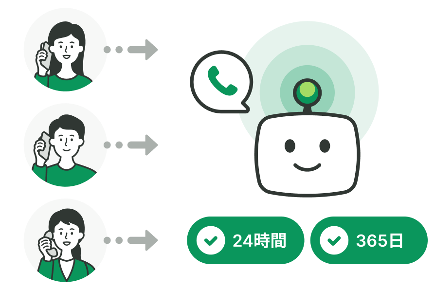 営業時間外や休日も含め、すべての着信に対してAIが即座に応答します。