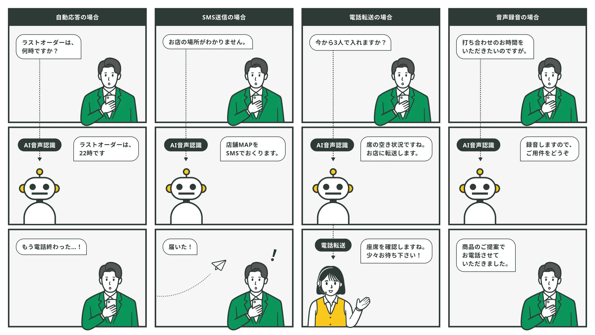 認識する質問と応答方法を設定することで、従来スタッフが電話対応していた質問をAIが受け付けて自動応答することが可能です。