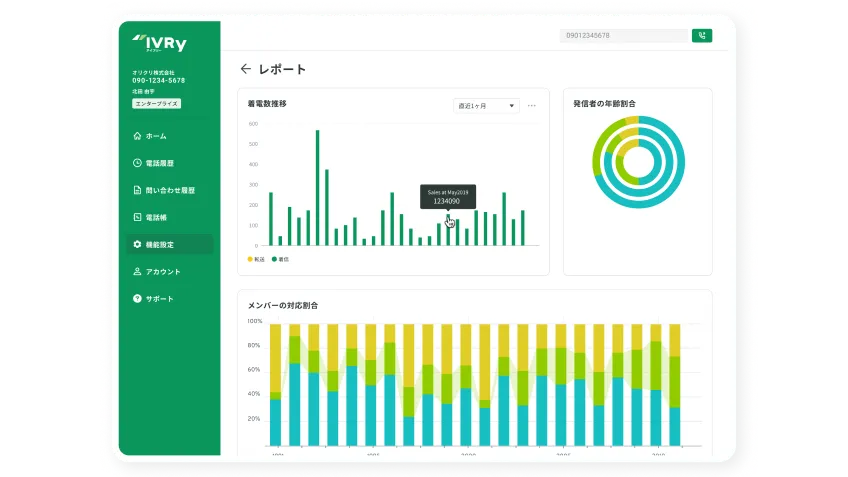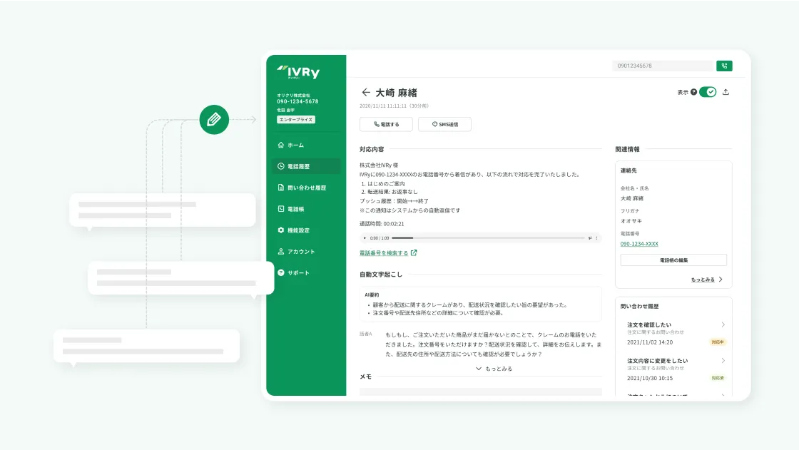受電履歴は音声・テキストデータとして全て保存されます。また、権限管理機能でスタッフの権限を制限することで、安心してご利用いただくことが可能です。