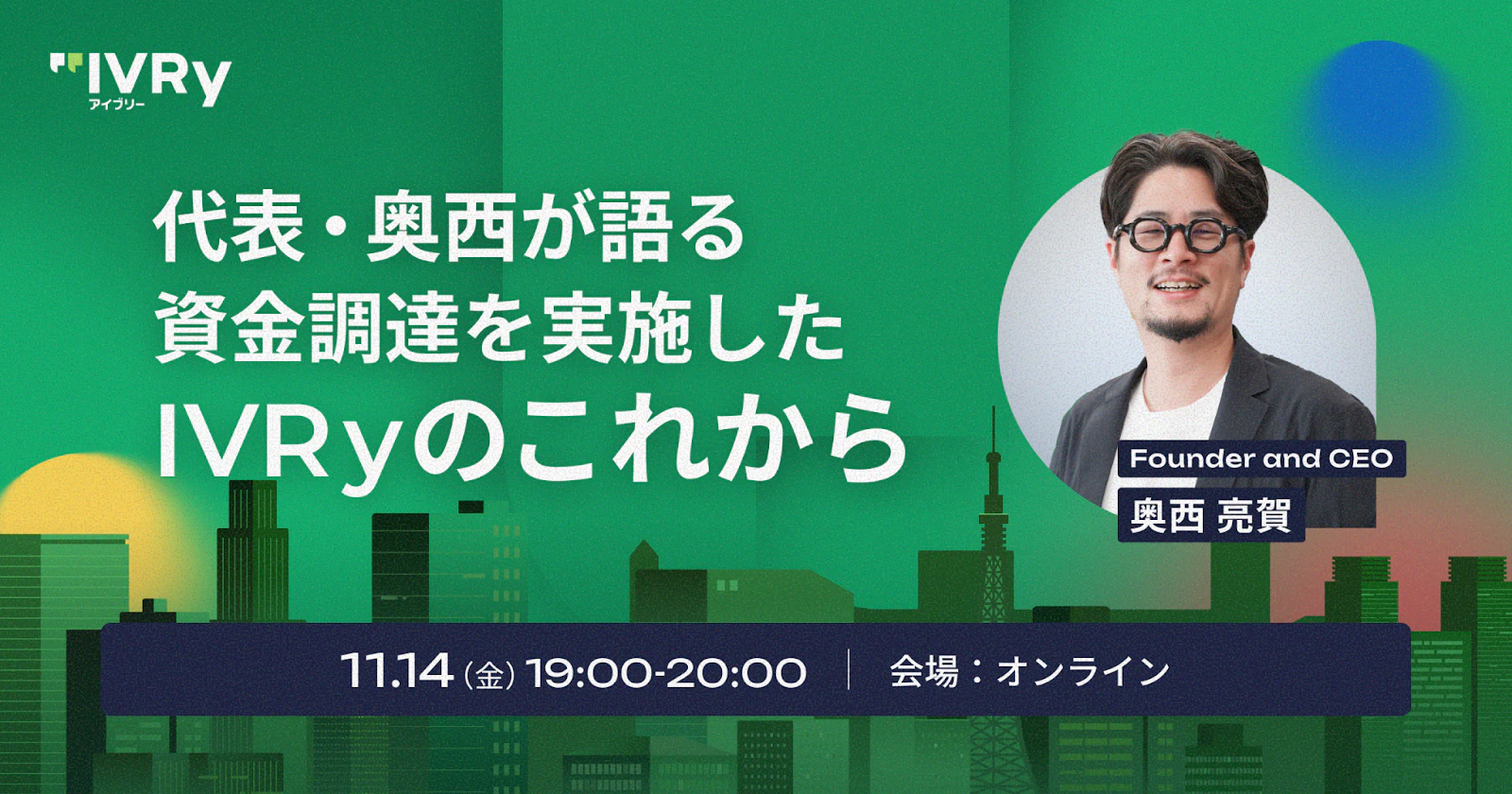 調達を機に代表の奥西が登壇し、IVRyのこれからをお話しするイベントを開催いたします。本イベントでは、調達した資金の使途、AIプロダクトカンパニーとしてのAI活用戦略、今後の事業・プロダクト・組織の展望などについて、質疑応答を交えながら詳しくご説明します。