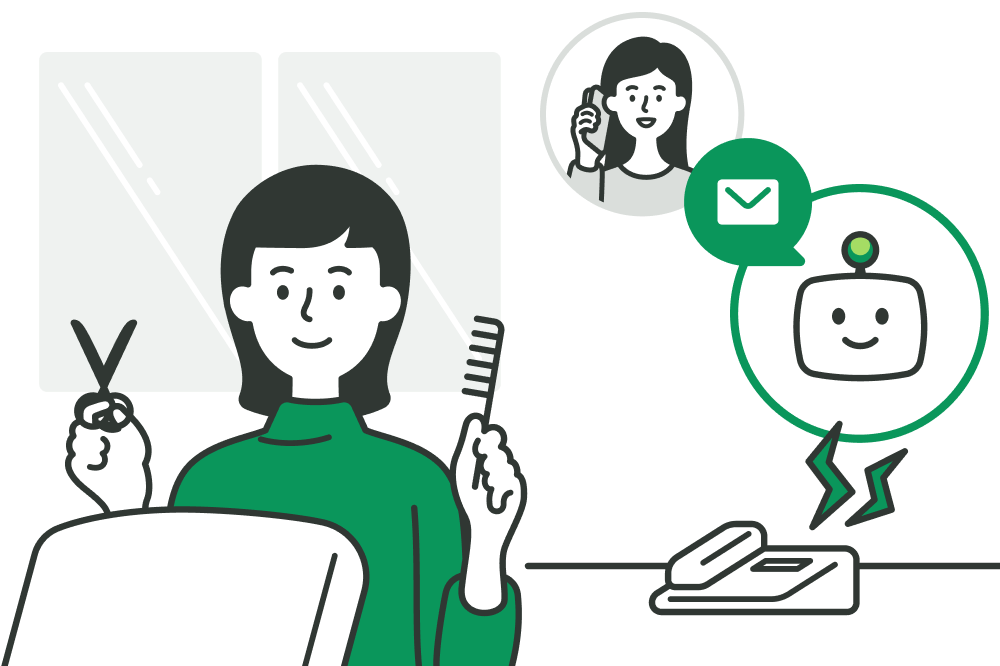 - はい。施術 中の電話もAIが一次対応し、用件をテキストでお知らせします。予約のお電話にはSMSでWeb予約ページをご案内するので、施術を中断せずに予約を受け付けられます。