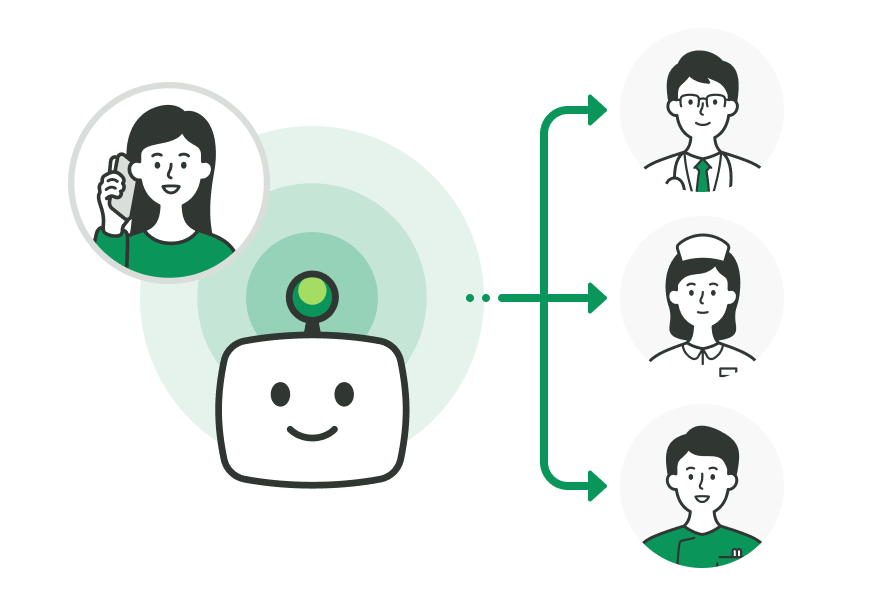 緊急のお電話は即座にスタッフへ接続し、診療予約や営業電話はAIが完結。