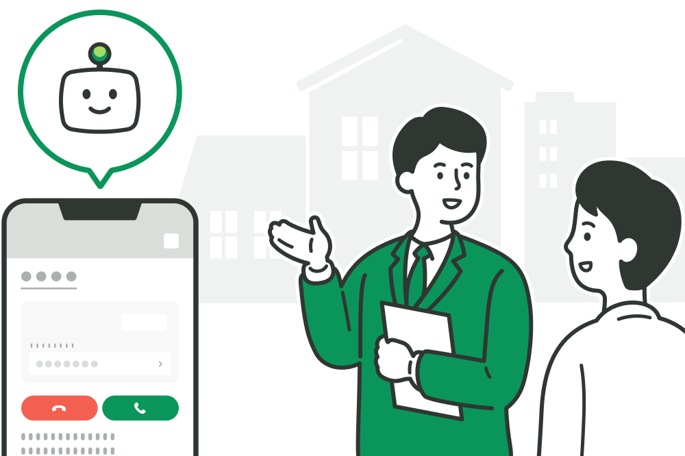 アイブリーのAIが電話の一次対応を自動化。物件問い合わせや内見予約にAIが応答し、営業スタッフは商談や内見に集中できます。